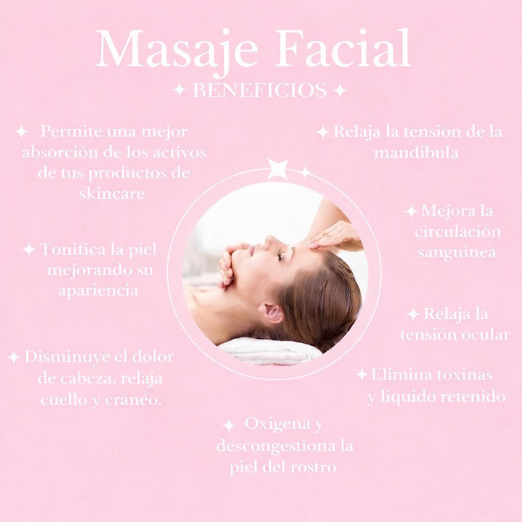El masaje suave ayuda a relajar los musculos del rostro, aliviando la tension facial y obteniendo mas luminosidad